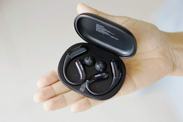 打开充电仓后就可以看到耳机本体了,相较于其他挂耳式耳机,这款南卡OE Nova看上去更加的轻盈和轻巧。